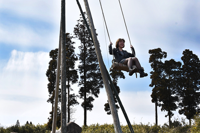 向かいには、『民宿久住 久住高原温泉』の立ち寄り湯があるので、ブランコで思いっきり遊んで汚れても、汗をかいても平気!