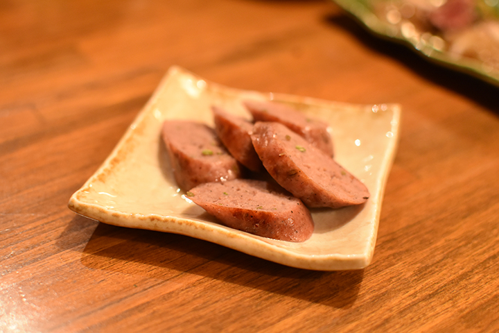 この日見学させていただいたのは猪サルシッチャの製造過程でしたが、鹿肉を利用した削り節「鹿節」、猪肉から作る醤油「猪肉醤」も現在制作中。鹿節を少し味見させていただいたのですが、肉の旨味が凝縮していて、鹿節でとった出汁を使ってどんな料理ができるんだろうとワクワクしました。