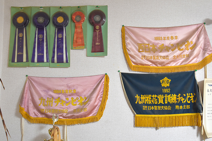 <以前ドッグトレーナーをされていたときの数々の賞のメダルやトロフィー>