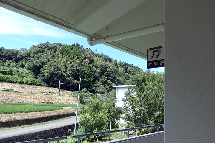 2Fの音楽室につきました。外に広がるのは田んぼや竹林ののどかな風景。自然に囲まれてとても静かです。創作活動にはぴったりの場所ですね。