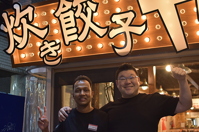 ボリューム満点でお財布にも優しいサラリーマンの味方、「炊き餃子やけん」中央町店 店長 大坪さん(写真右。左はスリランカ出身のしゃーなかさん)に聞いてみました。