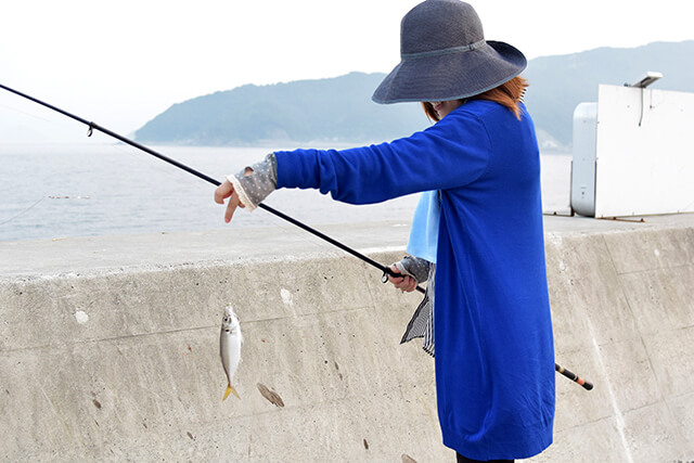 落ちないようにちょっと離れたところから釣りを楽しみます。